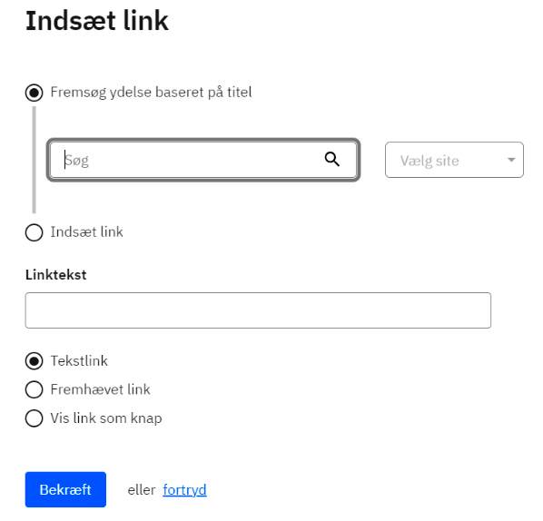 Når du indsætter et link i en tekst, så vil platformen automatisk sikre, at linket får en tydelig visuel markering, der adadskiller linket fra den omgivende tekst. Du kan vælge tre forskellige måder at vise et link.